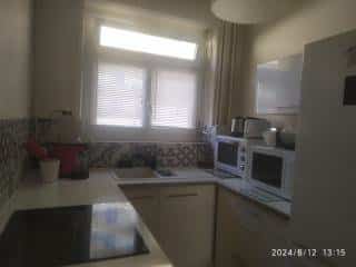 Espaces communs à partager (pour 2 étudiant.e.s) : cuisine séparée, entièrement équipée (2 réfrigérateurs/congélateurs, cuisinière avec four, four micro-onde, vaisselle et ustensiles de cuisine), salle de douche et WC séparés.