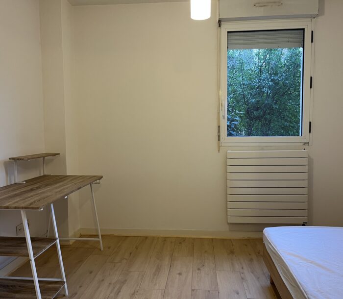 Espaces communs à partager (pour 3 étudiantes) : salon, cuisine entièrement équipée, salle de bains avec baignoire et WC.