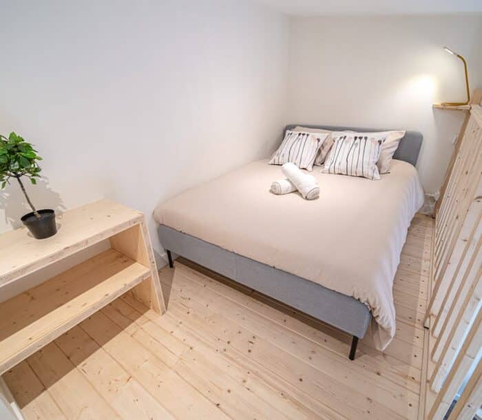 Situé dans une petite résidence indépendante, dans un quartier calme, il est équipé d'une mezzanine avec lit double, coin cuisine équipée, salle de bains et WC.