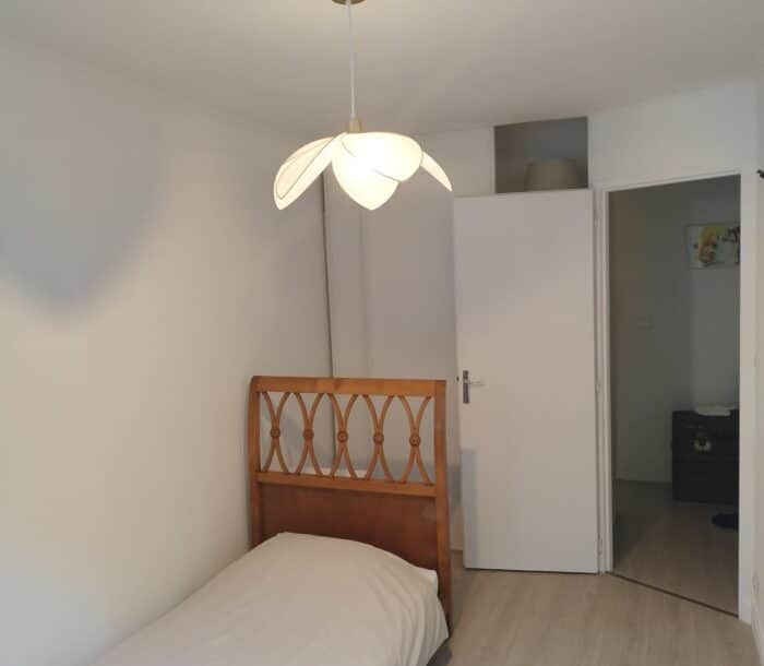 Chambre meublée de 11 m² refaite à neuf dans un duplex. Quartier dans un parc boisé au calme et facile d'accès avec vue sur Lyon.