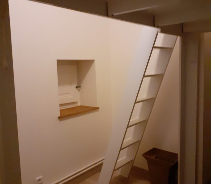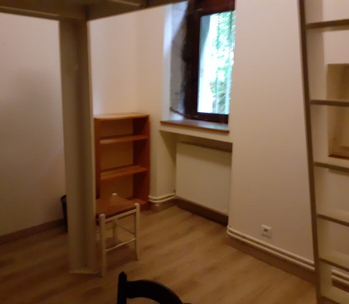Dans la belle maison de 150 m² d'un propriétaire, chambre totalement indépendante, équipée d'un lit mezzanine, bureau, chaise, rangements.