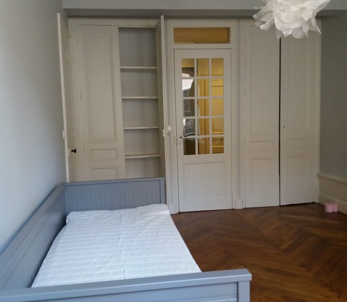 Dans un bel appartement de 110 m2 refait à neuf, très lumineux avec vue sur la Saône, situé au 4ème étage avec ascenseur, chambre disponible de 28 m² avec alcôve, sur 3 chambres occupées par des étudiants .