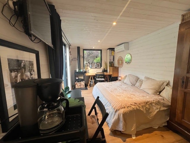 Il est composé d'une grande pièce avec coin cuisine totalement équipée, un canapé convertible (lit double), bureau et chaise, salle de douche avec WC.