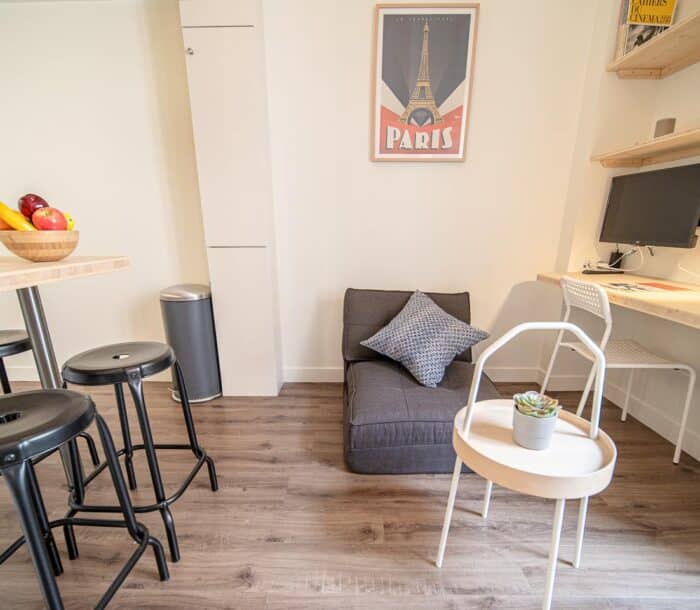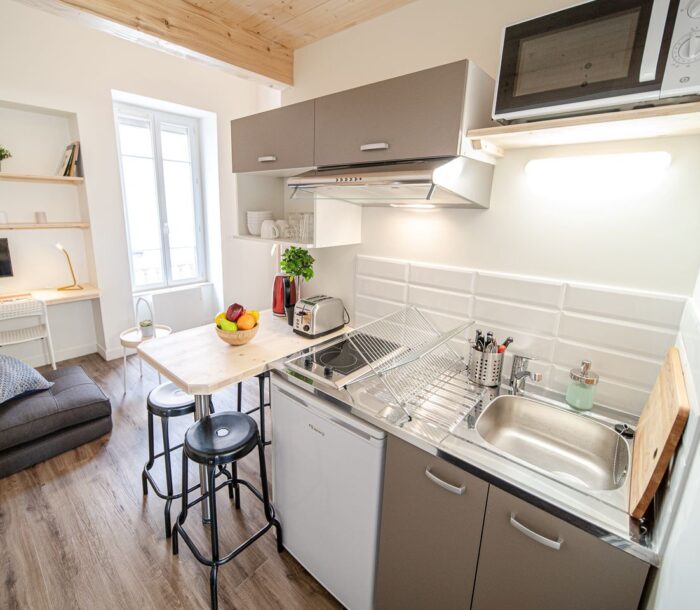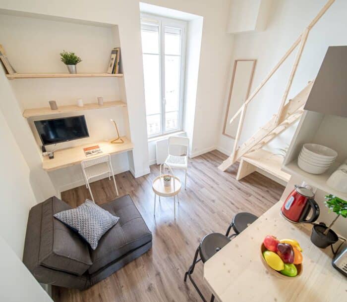 Studio lumineux meublés de 22 m² avec , lit-mezzanine double, coin cuisine équipée et salle de bains, situés dans une petite résidence indépendante, dans un quartier calme.