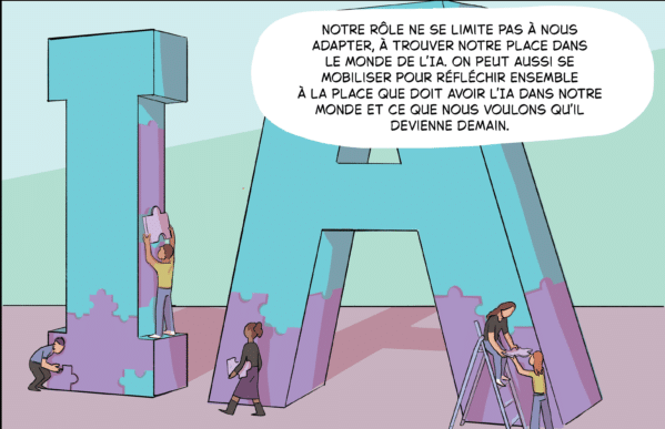 Projet de recherche tourné vers la société, l’esprit et les objectifs de NHNAI ont été traduits récemment sous forme de BD afin d’en faciliter la compréhension et de bien insister sur le rôle central qu’est appelé à jouer chacune et chacun dans l’effort éthique liée à l’IA. Cette BD est disponibles en libre accès sur le site internet du projet.