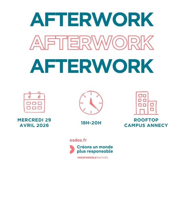 Inscription Inscription Annecy - 29/04 - Afterwork ESDES Nom * Prénom * E-mail * Classe * B1 B2 B3 M1 M2 Admis.e pour la rentrée 2026 RGPD * En cochant cette case et en soumettant ce formulaire, j'accepte que mes données personnelles soient utilisées pour prendre en compte ma demande indiquée et me recontacter S'inscrire Si vous êtes un humain, ne remplissez pas ce champ. Événement ESDES AFTERWORK - 29 avril 2026 UCLy le mercredi 29 avril 2026 à 16h00 Lieu de l'évènement Campus Alpes Europe - Annecy Contact 04 58 98 00 71 alpeseurope@univ-catholyon.fr Venez rencontrer des professionnels de la région et partager un moment convivial : Rendez-vous le 29 avril à 16h pour le Forum de l'alternance qui sera suivi d'un Afterwork sur le rooftop du campus.Merci de vous inscrire Partager