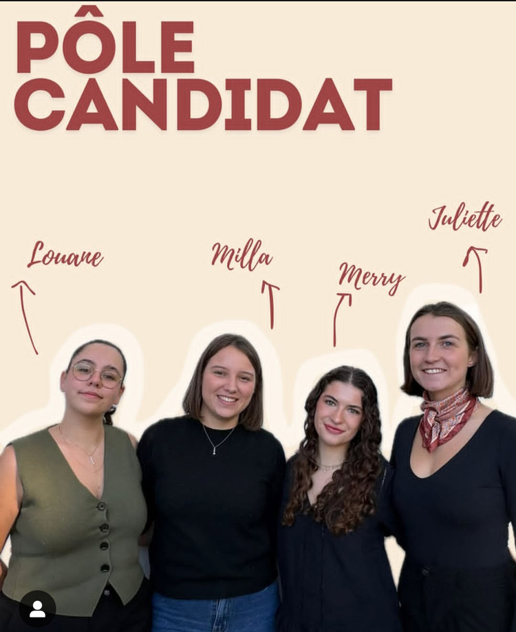 - Pôle candidats : Merry (Responsable), Juliette, Louane, Milla