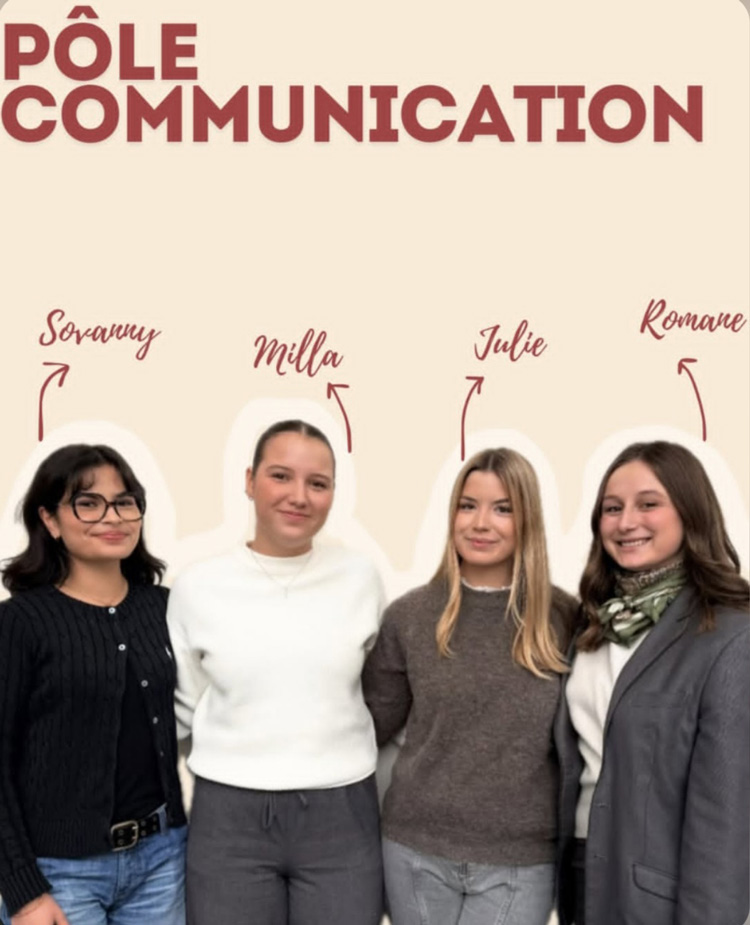 - Pôle communication : Romane (Responsable), Julie, Sovanny, Milla