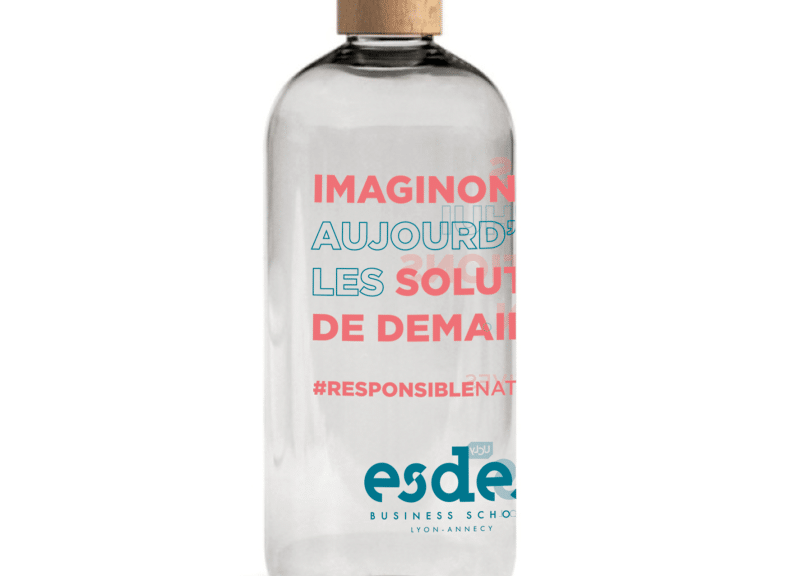 Cette gourde en verre avec bouchon bois est bien plus qu’un accessoire : c’est une déclaration. Son message “Imaginons aujourd’hui les solutions de demain” incarne les valeurs d’innovation et de durabilité de l’ESDES. À emporter partout avec vous.