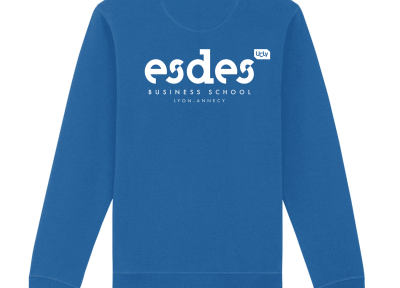 Le sweat officiel ESDES au design épuré et moderne. Confort absolu, coupe mixte et impression blanche sur bleu roi. L’essence du lifestyle étudiant.