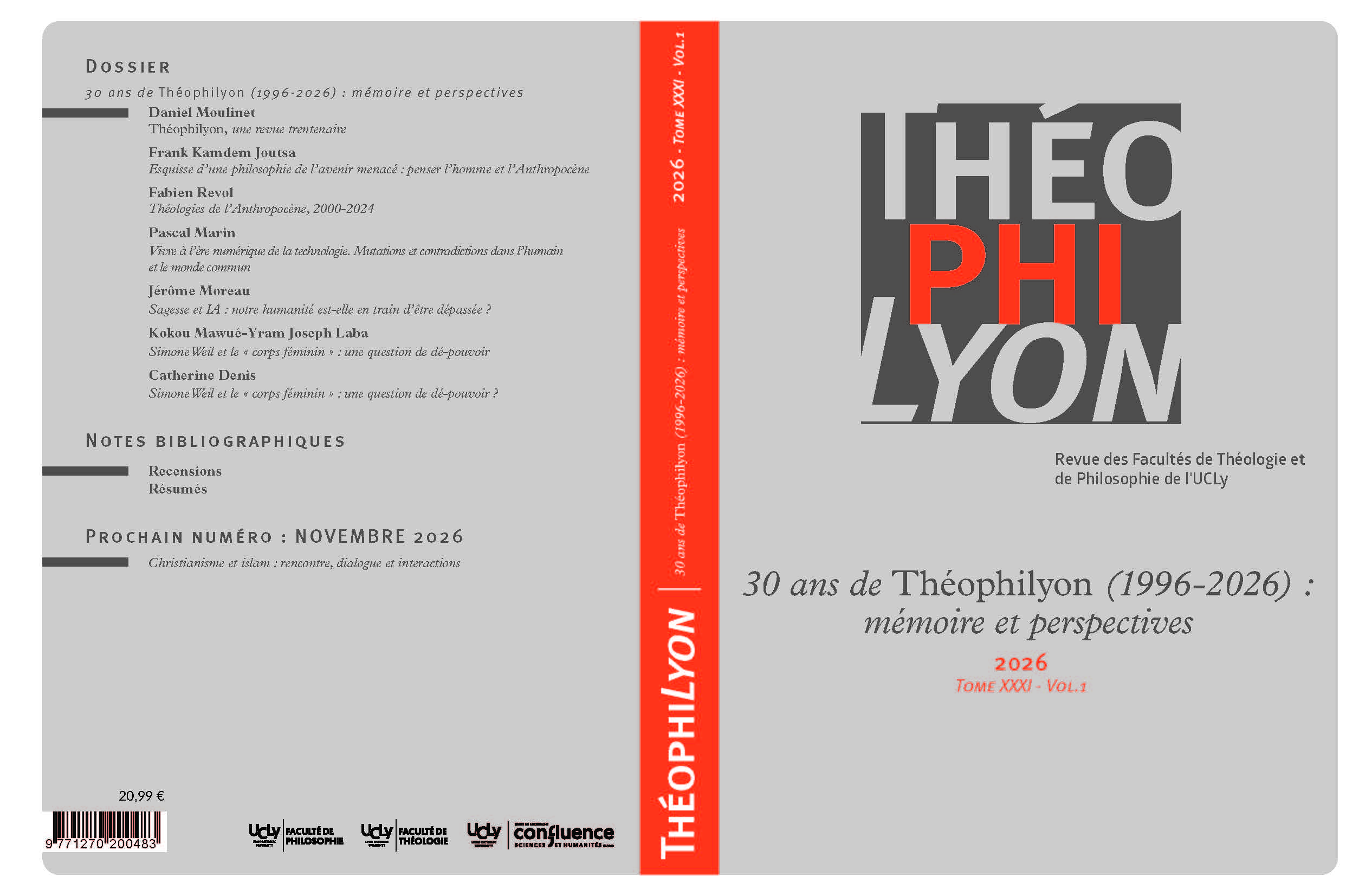 Théophilyon fête ses 30 ans ! À cette occasion, un numéro spécial revient sur l’histoire de la revue et propose un dossier sur trois thématiques qui ont émergé depuis la création de la revue : la notion d’anthropocène en écologie, la définition de l’humain face à l’IA et le corps des femmes face au pouvoir. Conformément à l’esprit de la revue, chaque thème est abordé à deux voix, sous un angle philosophique et sous un angle théologique.