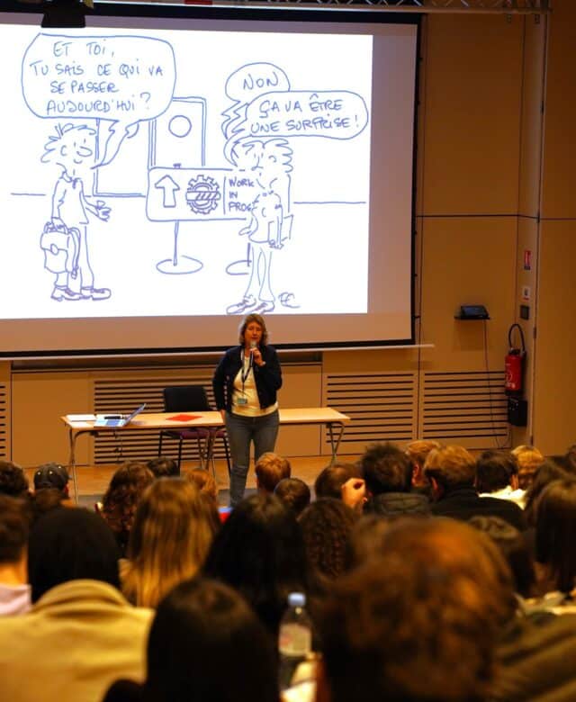 « Le premier but de cet exercice, c’est tout simplement de voir si un étudiant est à l’aise ou non pour gérer une situation de crise » explique Virginie Cartier, coordinatrice de Work in Progrès(s). « On se rend compte quand on est adulte en entreprise que, participer à la gestion de crise ça fait partie de notre ADN, ou pas. Savoir gérer ces situations, et surtout savoir qu’on ne sait pas tout gérer, c’est une donnée importante lorsqu’on cherche un emploi ! Un étudiant moins résilient n’est pas mauvais, mais, si, dans une situation de crise, il ne peut pas dépasser la phase de sidération, il risque d’être très malheureux. »